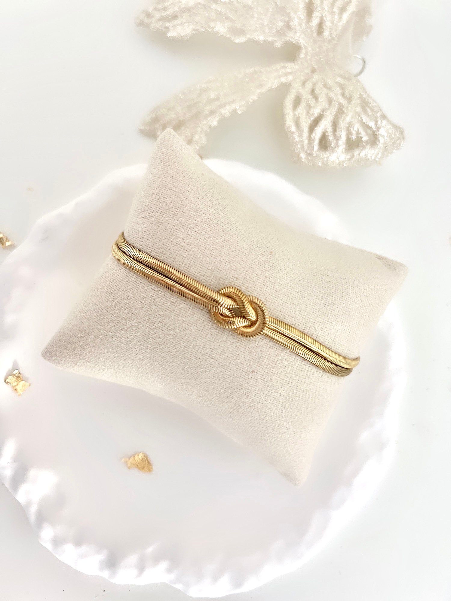 Le bracelet Liana séduit par son design noué, symbole de lien et d’harmonie. Son allure élégante et intemporelle en fait un accessoire parfait pour ajouter une touche de raffinement et de simplicité sophistiquée à votre poignet.
